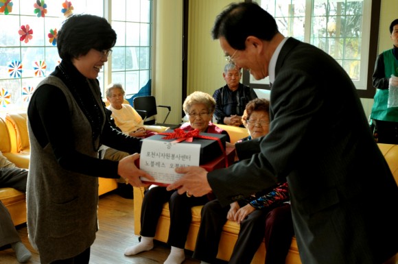 ¶ÇÇÑ È¸¿øµéÀº ½Ã¼³¶ó¿îµù ¹× Çǵå¹éÀ» ÅëÇÑ Æ÷õ½Ã °ü³» ³ëÀκ¹Áö½Ã¼³°ú ȸ¿øµé °£ÀÇ Á¤º¸±³·ù¸¦ ÅëÇØ Áö¿ª»çȸÀÇ ¼Ò¿ÜµÈ °èÃþ¿¡ ´ëÇØ ´Ù½ÃÇѹø µ¹ÀÌÄÑ º¼ ¼ö ÀÖ´Â ½Ã°£À» °¡Á³À¸¸ç, ȲÀÏÇö ³óÇùÁöºÎÀåÀº Æ÷õ½Ò 10kg 6°³¸¦ ³ëÀκ¹Áö½Ã¼³¿¡ ±âÁõÇØ ³ëºí·¹½º ¿Àºí¸®ÁÖ Á¤½Å¿¡ ÀÔ°¢ÇÑ ³ª´®ÀÇ ¹®È¿¡ Àû±Ø µ¿ÂüÇÏ´Â ¸ð½ÀÀ» º¸¿´´Ù.