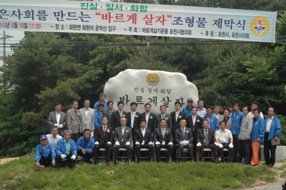 ¹Ù¸£°Ô»ì±â¿îµ¿ Æ÷õ½ÃÇùÀÇȸ, 6¹øÂ° Á¶Çü¹° ¼³Ä¡ Á¶µµÇà ȸÀå "±¹¹ÎÁ¤½Å¿îµ¿ Àü°³ÇÏ°í »ýȰ¹®È¿îµ¿ Á¤Âø"