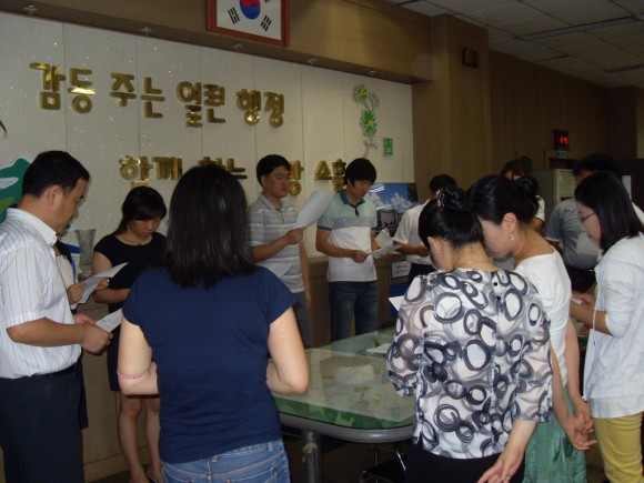 ÇÑÆí, ¼ÒÈêÀ¾Àº Àü Á÷¿ø¿¡°Ô ¡®µû¶æÇÑ ¹Ì¼Ò·Î ½Ã¹ÎÀ» ¸ÂÀÌÇϱ⡯, ¡®½Ã¹ÎÀÇ ÀÔÀå¿¡¼ »ý°¢Çϱ⡯ µîÀ» ½ÇõÇÏ°í ¹Î¿øÀÎ ÀÀ´ë µîÀ» ±³À°ÇÏ¸é¼ ¿ì¼ö»ç·Ê´Â Àû±Ø ¹ß±¼ È®»ê½ÃŰ°í °³¼±»çÇ×Àº Á¶Ä¡ÇØ ½Ã¹Î¿¡°Ô °¨µ¿ÀÇ ÇàÁ¤ ½ÇõÀ» ³»¿ëÀ¸·Î Ä£Àý±³À°À» ½Ç½ÃÇϰí ÀÖ´Ù.