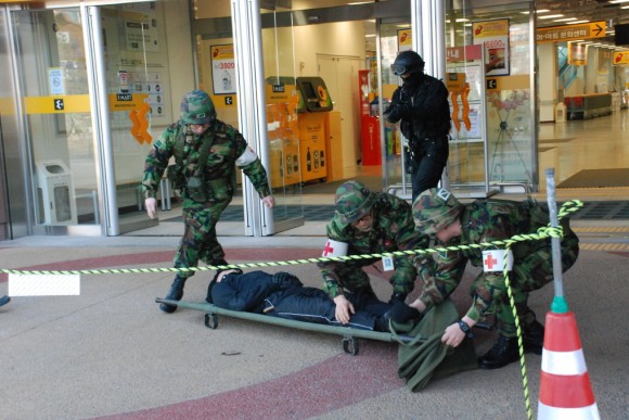 Å×·¯ ´ëºñż¼ ºÐ¼®°ú ½ÇÁúÀûÀÎ ÈÆ·Ã¹æ¾È¿¡ ´ëÇÑ ¼³¸í¿¡ ÀÌ¾î Æø¹ß¹° Å×·¯, ÀÎÁú¹ü ¹æÈ µî¿¡ ´ëºñÇÑ ½Ã¹ü½Ä ÈÆ·ÃÀÌ ÁøÇàµÆ´Âµ¥, °¡»ó ½Ã³ª¸®¿À¿¡ µû¶ó Àü°³µÈ À̹ø ÈÆ·ÃÀº ´ÙÁßÀÌ¿ë½Ã¼³ÀÎ E-¸¶Æ®¿¡¼ Æø¹ß¹°ÀÌ ¹ß°ßµÇÀÚ ´ëÅ×·¯ Ãʵ¿Á¶Ä¡ºÎ´ë°¡ ½Å¼ÓÇÏ°Ô Ã⵿ÇÏ´Â »óȲÀ¸·Î ½ÃÀ۵ƴÙ.
