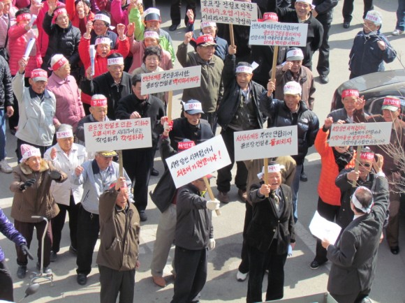 6°³Åë ÁֹεéÀº Áö³ÇØ ¼³¸íȸ ½Ã °ñÇÁÀå ÁöÇϼö ¿À¿° µî¿¡ ´ëÇÑ ´ëÃ¥À̳ª º¸»óÀ» Ã˱¸ÇÏ´Â ¹Ý¸é, À̳¯ °øÃ»È¸¿¡¼´Â Âü¼® ÁֹεéÀÌ ¸ðµÎ ºÓÀº °á»ç¹Ý´ë ¸Ó¸®¶ì¸¦ µÎ¸£´Â µî °ñÇÁÀå °Ç¸³À» ¹Ý´ëÇÑ´Ù´Â ¸ñ¼Ò¸®¸¦ ³ô¿´´Ù.
