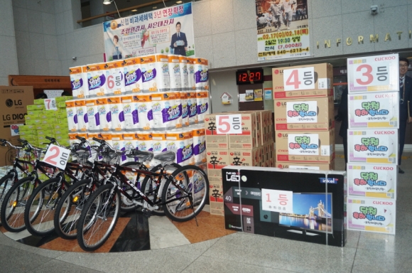 ¶Ç À̺¥Æ®·Î ÁøÇàµÈ Çà¿î±Ç Ãß÷¿¡¼´Â Ưº°»óÀ¸·Î µð¿À½º³ÃÀå°í, 1µî»óÀ¸·Î LED 40ÀÎÄ¡ TV, 2µîÀ¸·Î ¾Ð·Â¹ä¼Ü, 3µî Áø°øÃ»¼Ò±â, 4µî ÀÚÀü°Å, 5µî ½Å¶ó¸é¹Ú½º, 6µî °í±ÞÈÀåÁö, 7µî ³ÃÀå°í Á¤¸®¿ë±â ¼¼Æ®, 8µî °í±Þ ÇØ¹Ù¶ó±â¾¾À¯, Á¶ÇÕ¿ø ÈÄ¿ø ½Ò µîÀÌ ÁغñµÅ Âü¼®ÇÑ ¸¹Àº Á¶ÇÕ¿øµé¿¡°Ô ǪÁüÇÑ »óǰÀ» Àü´ÞÇß´Ù.