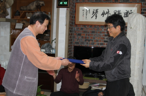 °æ±âµµ Æ÷õ½Ã ¿µºÏ¸é ÀÚÀϸ® ÆÈÈ£ ¸¶À». Áý µÚ·Î´Â ±â¾ÏÀýº®¿¡ ÇÑź°ÀÌ È帣°í ÈÀû¿¬ÀÌ °¡±îÀÌ º¸ÀÌ´Â ¿À¼¼Ã¶ Ç®ÇǸ® ¸íÀÎ Áý¿¡¼´Â Á»Ã³·³ º¸±â ¾î·Á¿î ¼ö¿©½ÄÀÌ ÀÖ¾ú´Ù. ¼ö³â°£ Ç®ÇǸ® ¿¬ÁÖ¹ýÀ» ¿¬¸¶ÇÏ°í ±â·®°ú ¿¹´É ¼öÁØÀÌ ÃâÁßÇÑ »ç¶÷µé¿¡°Ô °ü°è Àü¹®°¡(´ëÇб³¼ö 3ÀÎ ÀÌ»ó)¿¡ ¾ö°ÝÇÑ ½É»ç¸¦ °Åó ÇÕ°Ý ÈÄ À̼öÁõÀ» ¹ß±ÞÇÏ´Â ¼ö¿©½ÄÀº ¹«Çü¹®ÈÀç Á¦38È£ Ç®ÇǸ® ¿¬ÁÖÀÇ ±â·®À» ÀÎÁ¤Çϰí Á¦ÀÚ¸¦ °¡¸£Ä¥ ¼ö ÀÖ´Â À̼öÁõÀ̶ó ±× ¾î´À ´ëÇб³ Á¹¾÷À庸´Ùµµ ¶æÀÖ´Â ÀÚ°ÝÁõÀ̶ó ÇÒ ¼ö ÀÖ´Ù. 2016³â 2¿ù 14ÀÏ ¿ÀÀü 10½Ã 30ºÐ°æ ´Ã Ç®ÇǸ® Àü¼ö±³À°À» ÇØ¿À´ø º¸À¯ÀÚ ÀÚÅÿ¡¼ ¿¸° ¼ö¿©½ÄÀº ±× ¾î´À Á¹¾÷½Äº¸´Ù ¾ö¼÷ÇÏ°í °æ°ÇÇÏ¿´´Ù. °æ±âµµ ¹«Çü¹®ÈÀç Á¦38È£ Ç®ÇǸ® º¸À¯ÀÚ·Î ÁöÁ¤µÈ ¿À¼¼Ã¶ ¸íÀÎÀÇ Á¦ÀÚ ¼¼ ºÐÀÌ À̼öÁõÀ» ¹Þ´Â ¶æ±íÀº ³¯À̱⵵ ÇÏ´Ù. 2006³â 8¿ù¿¡ ÀÔ¹®ÇÑ ±è¼ºÈ¯¾¾´Â ¿ÃÇØ 69¼¼·Î °æ±âµµ ÆÄÁֽÿ¡¼ ±³À°À» ¹ÞÀ¸·¯ ´Ù´Ï¼Ì°í, 2007³â 12¿ù¿¡ ÀÔ¹®ÇÑ ÇöÀÍȾ¾´Â 54¼¼·Î °æ±âµµ ¼ö¿ø¿¡¼, 2009³â 7¿ù¿¡ ÀÔ¹®ÇÑ µµÇö¿Á¾¾´Â 59¼¼·Î °æ±âµµ Àǿսÿ¡¼ Ç®ÇǸ®¶ó´Â ¿ì¸®ÀÇ ÀüÅë¹®È. ÀؾîÁ® °¡´Â ÀüÅë Çâ¾Ç±â Ç®ÇǸ®¸¦ À̾¾ß ÇÑ´Ù´Â ÀϳäÀ¸·Î ±×µ¿¾È ¿½ÉÈ÷ ¹è¿ö ¿Ô´Ù. À̳¯ À̼öÁõÀ» Á¦Àڵ鿡°Ô ¼ö¿©ÇÑ º¸À¯ÀÚ ¿À¼¼Ã¶ Ç®ÇǸ® ¸íÀÎÀº 1971³â ÁßÇб³ 1Çг⠶§ Ç®ÇǸ®¸íÀÎ (ͺ)ï£ÐÑߣ(Àü±Ý»ê) ¼±»ý´ÔÀ» ¸¸³ª Ç®ÇǸ®¸¦ ¹è¿ì°Ô µÇ¾ú´Ù ÇÑ´Ù. ³²µéÀº º»ÀÎÀ» Ç®ÇǸ®°¡ ÃÖ°íÀÇ °æÁö¿¡ À̸£·¶´Ù°íµé Çϳª Áö±Ýµµ ÇÏ·çµµ °Å¸£Áö ¾Ê°í º»Àο¡ ±â·®À» ´õ¿í ³ôÀ̱â À§ÇØ »õº®À̸é Ç®ÇǸ® µ¶°øÀ» ¾à 40¿© ºÐ Àú³á¿¡´Â ¾à 1½Ã°£ ¸Í¿¬½ÀÀ» Çϴµ¥ ÇÏ·ç 1½Ã°£ 40ºÐ°£ °¢±â ´Ù¸¥ ¿©·¯ °îµéÀ» ¿¬ÁÖ ÇÑ´Ù°í ÇÑ´Ù. À̰î Áß¿¡´Â ¿¾ºÎÅÍ ÀüÇØ ³»·Á¿À´Â °¢µµ ¹Î¿ä. ¹Î¼Ó ±â¾Ç°î(°¢Á¾ ¹Î¼ÓÃàÁ¦¿¡ ¾²ÀÓ). û¼º°î(´ë±Ý¿¡ ¸í°î) µîµµ ÀÖÁö¸¸ ÀÚ½ÅÀÌ ÀÛ°îÇÑ ¿À¼¼Ã¶·ù Ç®ÇǸ® »êÁ¶, ¿À¼¼Ã¶·ù Ç®ÇǸ® ºÀÀåÃë, ¿À¼¼Ã¶ ÀÛ»ç/ÀÛ°î ÇÑź° ¾Æ¸®¶ûµµ ÀÖ´Ù. ¿À ¸íÀÎÀº ÀÚ½ÅÀÇ ¸·³»µþÀÎ ¿¬°æ ¾çµµ Ç®ÇǸ®°¡ ÁÁ¾Æ ¾Æ¹ö´ÔÀ¸·Î ºÎÅÍ »ç»ç. 10³âÀÌ µÇµµ·Ï Ȥµ¶ÇÑ ÈÆ·ÃÀ» ¸¶Ä¡°í ¼¾ß. 2006³â 6¿ù¿¡ 1È£ À̼öÁõÀ» ¼ö¿©¹Þ°í ³ª¸§´ë·Î Ç®ÇǸ®¸¦ ´õ¿í ¹ßÀü½Ã۰íÀÚ ´ëÇб³µµ ±¹¾Ç°ú¸¦ ÁøÇÐÇÏ¿© ÇöÀç´Â Ȱ¹ßÇÑ ±¹¾Ç Ȱµ¿À» Çϰí ÀÖ´Ù¸ç Ç®ÇǸ®°¡ °í³µµÀÇ À帣ÀÌ°í ¾î·Á¿ö ¿À´Ã¿¡ À̸£·¯ 2.3.4È£ À̼öÁõÀ» ¼ö¿©ÇÒ ¼ö ÀÖ¾ú´Ù°í ¸»Çß´Ù. ȼº½Ã Àå¸í ÃʵîÇб³¿¡¼ 2013³â 8¿ù ¸»±îÁö ±³ÀåÀ̴̼ø À̼±Àç ¼±»ý´ÔÀº Ç®ÇǸ®°¡ ÁÁ¾Æ ¿À ¸íÀο¡°Ô ÀÔ¹®Çؼ ¸Õ ±æÀ» ´Þ·Á¿Í ¹è¿î Ç®ÇǸ® ¿¬ÁÖ¹ýÀ» Çлýµé¿¡°Ô °¡¸£ÃÄ ¿Ô´Ù. ¶Ç ±³Á÷¿øµé¿¡°Ôµµ ÇÔ²² ÇÒ °ÍÀ» ±ÇÀå ÇØ¿Ô°í, ¿ì¸®ÀÇ ÀüÅ빮Ȱ¡ Àß º¸Á¸µÇ±â¸¦ ¹Ù¶õ´Ù¸ç Áö±ÝÀº ±³Á÷À» ÀºÅðÇßÁö¸¸ Ç®ÇǸ® º¸Á¸À» À§Çؼ Èû¾²°Ú´Ù°í ¸»Çß´Ù.