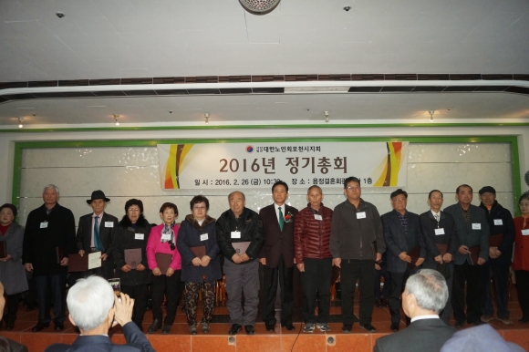 ´ëÇѳëÀÎȸ Æ÷õ½ÃÁöȸ(À±È£ÁØ È¸Àå)´Â 26ÀÏ ¿ÀÀü10½Ã 30ºÐ Æ÷õ ¿ëÁ¤È¸°ü¿¡¼ 2016 Á¤±âÃÑȸ¸¦ °³ÃÖÇß´Ù.