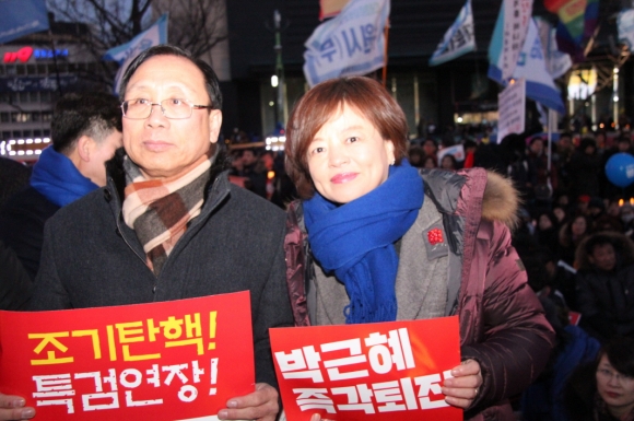 ¹Ú±ÙÇýÁ¤±ÇÅðÁøºñ»ó±¹¹ÎÇൿÀº À̳¯ ¿ÀÈÄ 6½Ã ¼¿ï ±¤È¹®±¤Àå¿¡¼ ¿¸° 17Â÷ ÁÖ¸» ÃкÒÁýȸ¿¡¼ 100¸¸¸íÀÇ ½Ã¹ÎÀÌ Âü¿©ÇÑ °ÍÀ» ºñ·ÔÇØ Àü±¹ÀûÀ¸·Î 107¸¸8000¿©¸íÀÌ ÃкÒÀ» µé¾ú´Ù°í ¹àÇû´Ù.