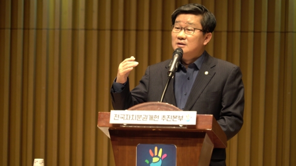 | ÀüÇØÃ¶ ÀÇ¿øÀº 17ÀÏ ´õºÒ¾î¹ÎÁÖ´ç ¼Ò¼Ó Áö¹æÀÚÄ¡´ÜüÀåµé·Î ±¸¼ºµÈ Àü±¹ÀÚÄ¡ºÐ±Ç°³Çå ÃßÁøº»ºÎ°¡ ¼¿ï½Ãû¿¡¼ °³ÃÖÇÑ¡®ÀÚÄ¡ºÐ±Ç°³Çå ±¹¹Î´ëÅä·Ðȸ¡¯¿¡ Âü¼®ÇØ °³ÇåÀ» ÁÖÁ¦·Î Á¤°ß¹ßÇ¥¸¦ Çß´Ù.