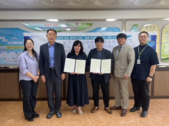| °æ±âµµÆ÷õ±³À°Áö¿øÃ»(±³À°Àå ¼Ò¼º¼÷)Àº 9¿ù 23ÀÏ Æ÷õ±³À°Áö¿øÃ» ±³À°Àå½Ç¿¡¼ ±Â³×À̹ö½º °æ±âµ¿ºÎ»ç¾÷º»ºÎ¿Í Áö¿ª ³» À§±â ¾Æµ¿, û¼Ò³â ¹ß±¼°ú Áö¿ø µî ±³À°º¹ÁöÇù·Â Ȱ¼ºÈ¸¦ À§ÇÑ ¾÷¹«Çù¾àÀ» ü°áÇß´Ù°í ¹àÇû´Ù.