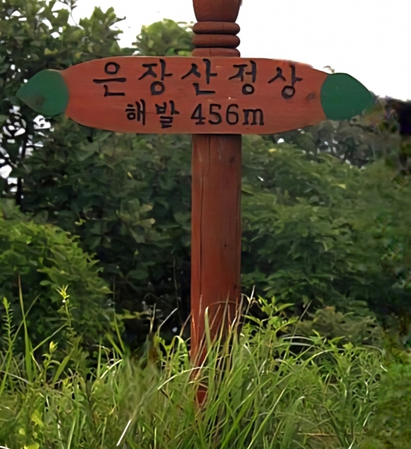¨ç <ÀºÀå»ê Á¤»ó Ç¥Áö¸ñ> ÀºÀå»ê Á¤»ó(ÇØ¹ß 456m)À» ¾Ë¸®´Â ³ª¹« Ç¥ÁöÆÇ. Á¤»ó¿¡ µµÂøÇÑ µî»ê°´µéÀÌ ±â³ä»çÁøÀ» ³²±â´Â ¸í¼ÒÀÌ´Ù.
