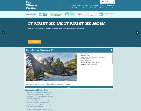»ê¸²Ã» ±¹¸³¼ö¸ñ¿ø(¿øÀå ÀÓ¿µ¼®)Àº ±âÈÄÀ§±â ´ëÀÀÀ» À§ÇÑ ±¹Á¦ Çù·Â °È¸¦ À§ÇØ, ¹Ì±¹ Ç̽º½Ä¹°¿øÀÌ ÁÖµµÇϰí Àü ¼¼°è 30°³±¹(´ëÇѹα¹ Æ÷ÇÔ) 247°³ ±â°üÀÌ Âü¿©ÇÏ´Â ¡®±âÈĺ¯È ŸŶ(Climate Toolkit)¡¯ ³×Æ®¿öÅ©¿¡ Á¤½ÄÀ¸·Î °¡ÀÔÀ» ¿Ï·áÇß´Ù°í ¹àÇû´Ù.
