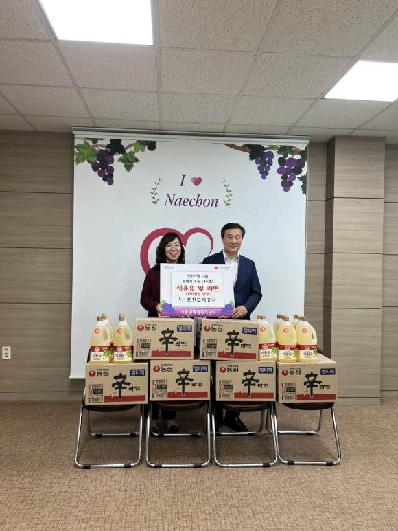 | Æ÷õµµ½Ã°ø»ç(»çÀå ÀÌ»ó·Ï)´Â Áö³ 25ÀÏ ³»Ã̸é Àú¼Òµæ °èÃþÀ» À§ÇØ 150¸¸ ¿ø »ó´çÀÇ ½Ä¿ëÀ¯ ¹× ¶ó¸éÀ» °æ±â »çȸº¹Áö°øµ¿¸ð±Ýȸ¿¡ ±âŹÇÏ¸ç ¡®ÀÌ¿ô»ç¶û ³ª´®¸±·¹ÀÌ 44È£¡¯¿¡ µ¿ÂüÇß´Ù.