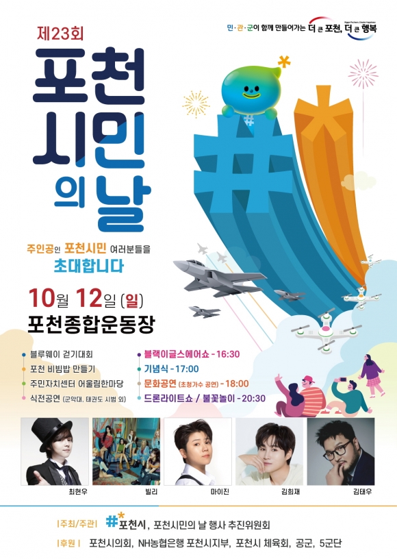 º» ÃàÇϺñÇàÀº 10¿ù 12ÀÏ ¿ÀÈÄ 4½Ã 30ºÐºÎÅÍ 5½Ã±îÁö Á¦23ȸ Æ÷õ½Ã¹ÎÀÇ ³¯ ±â³äÇà»ç¿¡¼ ÁøÇàÇÒ ¿¹Á¤ÀÌ´Ù.