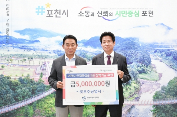 | Æ÷õ½Ãû¼Ò³âÀç´Ü(ÀÌ»çÀå ¹é¿µÇö)Àº Áö³ 14ÀÏ Æ÷õ»ó°øÈ¸ÀǼÒ(ȸÀå ÇÑÈñÁØ)¿¡¼ 1õ¸¸ ¿ø, ¢ß¿ìÁÖ°ø¾÷»ç(´ëÇ¥ Á¶¼º¹Î)¿¡¼ 5¹é¸¸ ¿øÀÇ ÀåÇбÝÀ» ±âŹ¹Þ¾Ò´Ù°í ¹àÇû´Ù.