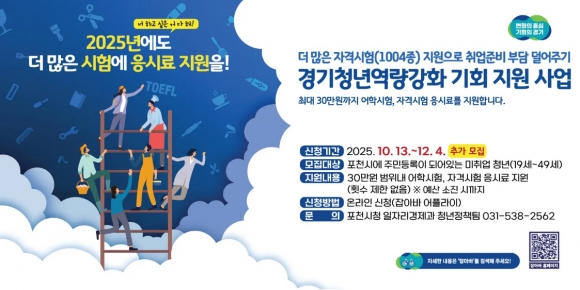 Ãß°¡ ¸ðÁý ±âÇÑÀº 12¿ù 4ÀϱîÁöÀ̸ç, Æ÷õ½Ã¿¡ Áֹεî·ÏÀÌ µÇ¾î ÀÖ´Â 19¼¼~49¼¼ ¹ÌÃë¾÷ û³âÀÌ¸é ´©±¸³ª ½ÅûÇÒ ¼ö ÀÖ´Ù. ¿¬°£ ÃÖ´ë 30¸¸ ¿ø Çѵµ ³»¿¡¼ ¾îÇнÃÇè ¶Ç´Â °¢Á¾ ÀڰݽÃÇè ÀÀ½Ã·á¸¦ ½Çºñ·Î Áö¿ø¹ÞÀ» ¼ö ÀÖÀ¸¸ç, Áö¿ø Ƚ¼ö¿¡´Â Á¦ÇÑÀÌ ¾ø´Ù. ´Ù¸¸, ½ÃÇè ÀÀ½ÃÀÏ ±âÁØ ¹ÌÃë¾÷ »óÅ¿©¾ß Çϸç, 1³â ¹Ì¸¸ ´Ü±â±Ù·ÎÀÚµµ ¹ÌÃë¾÷ÀÚ·Î °£ÁֵǾî Áö¿ø¹ÞÀ» ¼ö ÀÖ´Ù.