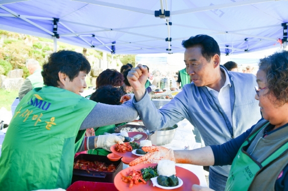 »õ¸¶À»È¸¿øµéÀº ¾î¸£½ÅµéÀ» À§ÇØ Á¤¼º²¯ ÁغñÇÑ Àâä, ¶±, °úÀÏ µî ´Ù¾çÇÑ À½½ÄÀ» ´ëÁ¢Çϸç Á¤À» ³ª´³´Ù. ¶ÇÇÑ ±º³»¸é ÁÖ¹ÎÀÚÄ¡¼¾ÅÍ Æ®·ÎÆ®À屸 ³Å¸ÆÀ ¡®±º³»µÎ¸®Çϳª¡¯ÀÇ Èï°Ü¿î °ø¿¬ÀÌ ¹«´ë¿¡ ¿Ã¶ú´Ù.