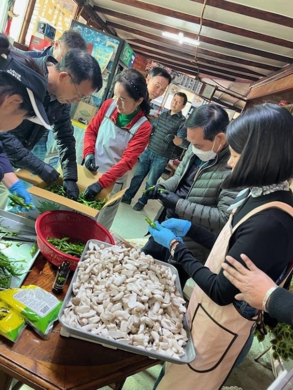 À̹ø Çà»ç´Â ÇùÀÇü À§¿øµéÀÌ È¸ºñ¸¦ ¸ð¾Æ ½ÄÀç·á¸¦ ±¸ÀÔÇϰí, ¹ÝÂùÀ» ¸¸µé¾î ¾î·Á¿î ÀÌ¿ôµé¿¡°Ô Àü´ÞÇÏ´Â Áö¿ªº¹Áö ½Çõ »ç¾÷À¸·Î ¸¶·ÃÇß´Ù. À̳¯ À§¿øµéÀº ºÒ°í±â, Àâä, ¹ö¼¸ÅÁ¼öÀ°, ÀåÁ¶¸² µî ¹ÝÂù 4Á¾À» Á¶¸®ÇØ Ãë¾à°èÃþ 70¿© °¡±¸¿¡ Àü´ÞÇß´Ù.