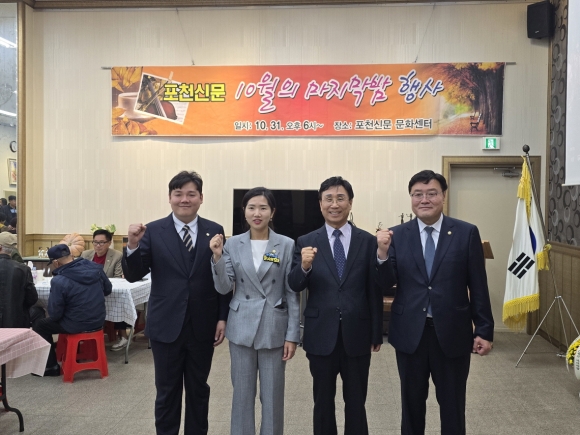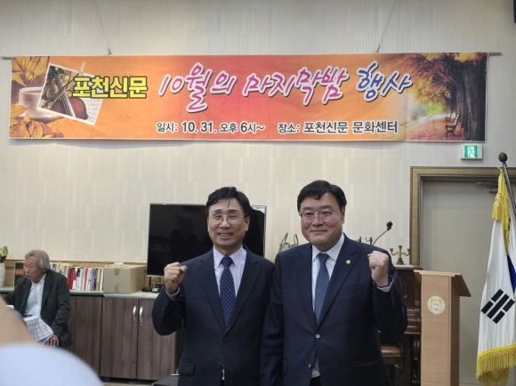 ¶ÇÇÑ ±è¼º³²‧À±Ãæ½Ä µµÀÇ¿ø°ú ¿¬Á¦Ã¢‧¼Õ¼¼È‧±èÇö±Ô ½ÃÀÇ¿øµµ ÀÕµû¶ó Ãà»ç¸¦ ÅëÇØ ¡°Æ÷õ½Å¹®ÀÌ Áö¿ª ¾ð·ÐÀ» ³Ñ¾î ½Ã¹Î°ú ¼ÒÅëÇÏ´Â ¿¸° Ç÷§ÆûÀÌÀÚ, Áö¿ª °øµ¿Ã¼ÀÇ ÀÚ±à½ÉÀ¸·Î ¼ºÀåÇØ¿Ô´Ù¡±°í °Ý·ÁÀÇ ¸»À» ÀüÇß´Ù. À̵éÀÇ Ãà»ç´Â Æ÷õ½Å¹®ÀÇ ¿À·£ ¿©Á¤°ú ±× ¼Ó¿¡ ´ã±ä Áö¿ª»ç¶ûÀ» ´Ù½Ã±Ý È®ÀÎÇÏ°Ô ÇÑ °¨µ¿ÀÇ ¼ø°£À̾ú´Ù.