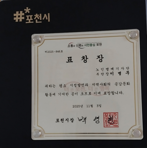 À̺´¹« ºÎ´ÜÀåÀº Æ÷õ½Å¹® ³ëÀÎ¸í¿¹±âÀÚ´ÜÀÇ ºÎ´ÜÀåÀ¸·Î¼ Áö¿ª ¾î¸£½Åµé°ú ÇÔ²²ÇÑ ´Ù¾çÇÑ ºÀ»çȰµ¿°ú Áö¿ªÇö¾È ÃëÀç, ½Ã¹Î¼ÒÅë¿¡ ¾ÕÀå¼ ¿Ô´Ù. ƯÈ÷ Æ÷õ½Å¹®³ëÀÎ¸í¿¹±âÀڷμ ½Ã¹Î°ú ³ëÀÎÀÇ ¸ñ¼Ò¸®¸¦ ´ëº¯Çϰí, Æ÷õÀÇ ¹ßÀü ¹æÇâÀ» ÇÔ²² °í¹ÎÇØ¿Â Á¡ÀÌ ³ôÀÌ Æò°¡µÆ´Ù.