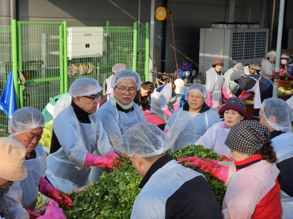 À̹øÇà»ç´Â µû¶æÇÑ °Ü¿ï³ª±â¸¦ Áö¿øÇϱâ À§ÇØ ¸¶·ÃµÇ¾úÀ¸¸ç, ³óÃÌ»ç¶ûºÀ»ç´Ü(´ÜÀå ¼Ãá¿À), ¿©¼ºÈ¸Àå´Ü(ÇùÀÇȸÀå ±èÀç¿), ¿µÁß³óÇù ÀÓÁ÷¿øµî 50¿©¸íÀÌ Âü¿©Çؼ ±èÄ¡ 1,000kg(10kg,80»óÀÚ)¸¦ ´ã°¡ 25°³¸® ¸¶À»°æ·Î´ç°ú Áö¿ª»çȸº¹Áö¼¾ÅÍ, Ãë¾à°èÃþ µî¿¡ Àü´ÞÇß´Ù.