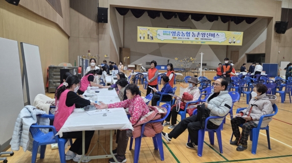 ¿µÁß³óÇù(Á¶ÇÕÀå ¹ÚÁ¾¿ì)¿¡¼´Â Áö³ 11¿ù 13ÀÏ(¸ñ) ¿ÀÀü8½ÃºÎÅÍ ¿µÁ߸鿡 À§Ä¡ÇÑ ¿µÁßüÀ°¹®È¼¾ÅÍ 1Ãþ¿¡¼ ¿µÁ߸é³ó¾÷ÀÎ¹× Áö¿ªÁֹΠ300¿©¸íÀÌ Áø·á¿¡ Âü¿©ÇÑ ¿µÁß³óÇù ã¾Æ°¡´Â ÀǷἺñ½º "³óÃÌ¿ÕÁø¹ö½º"¸¦ ¿î¿µÇß´Ù.