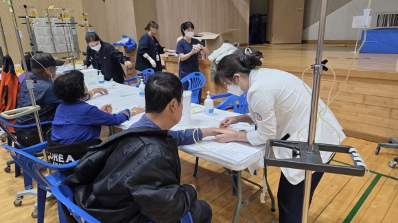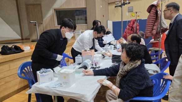 À̳¯ Çà»ç¿¡´Â ÀÚ¿øºÀ»çÀÚ·Î ¿ì¸®º´¿ø ÀÇ·áÁø 30¸í, ¿µÁß³óÇù ÀÓÁ÷¿ø 20¸í, ¿µÁß³óÇù ¿©¼º´Üü(³óÃÌ»ç¶ûºÀ»ç´Ü,¿©¼ºÈ¸Àå´Ü) 15¸íµî 65¸íÀÌ ÇÔ²² Âü¿©ÇÏ¿´´Ù. ³»ºóÀ¸·Î´Â ¹é¿µÇö Æ÷õ½ÃÀå, ÀÌ´öÁÖ NH³óÇùÆ÷õ½ÃÁöºÎÀå, ¹ÚÁ¾¿ì ¿µÁß³óÇù Á¶ÇÕÀåÀÌ ÇÔ²²ÇÏ¿© ¾î¸£½ÅµéÀÌ Áø·á¸¦ Àß ¹ÞÀ¸½Ç¼ö ÀÖµµ·Ï Àλçµå¸®¸ç ÇÔ²²ÇÏ¿´´Ù.
