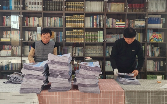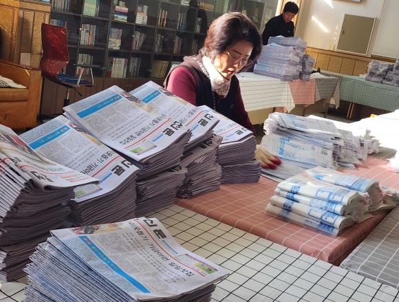 ȸÀÇ¿¡ ¾Õ¼ À§¿øµéÀº ¿ÀÀü 8½ÃºÎÅÍ Æ÷õ½Å¹®»ç 1Ãþ ¹®È¼¾ÅÍ¿¡¼ Á¦845È£ ½Å¹® ¹ß¼Û ÀÛ¾÷À» ÁøÇàÇß´Ù. °©ÀÚ±â Ãß¿öÁø ³¯¾¾¼Ó¿¡ À§¿øµéÀº ½Å¹® Á¢ÀÌ¿Í Æ÷Àå µî ¸ÃÀº ¹Ù ¿ªÇÒ¿¡ ÃÖ¼±À» ´ÙÇÏ¸ç ¼º½ÇÈ÷ ¹ß¼Û ¾÷¹«¸¦ ¸¶ÃÆ´Ù.