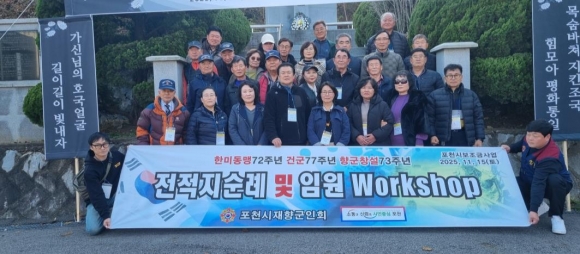 Æ÷õ½ÃÀçÇⱺÀÎȸ(ȸÀå °­Å¼±) Áö³­ 2025³â 11¿ù 15ÀÏ(Åä) ½Ãȸ, ¿©¼ºÈ¸ ÀÓ¿øÀÌ Âü°¡ÇÑ °¡¿îµ¥, °­È­µµ ÀÏ¿ø¿¡¼­ ÀüÀûÁö ¼ø·Ê Çà»ç¸¦ ½Ç½ÃÇß´Ù°í ¹àÇû´Ù.