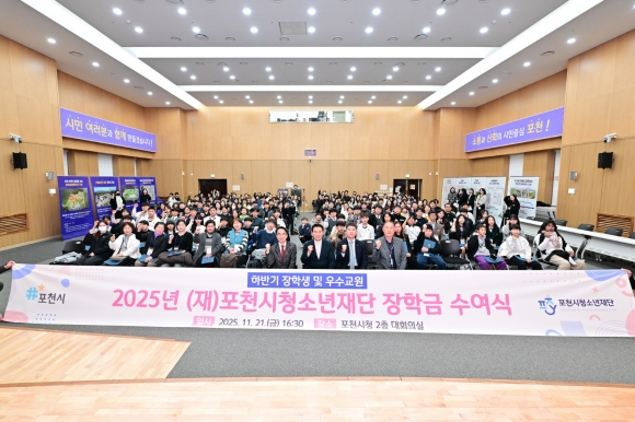 | (Àç)Æ÷õ½Ãû¼Ò³âÀç´Ü(ÀÌ»çÀå ¹é¿µÇö)Àº Áö³ 21ÀÏ(±Ý) Æ÷õ½Ãû ´ëȸÀǽǿ¡¼ 2025³â ÇϹݱâ ÀåÇÐ±Ý ¼ö¿©½ÄÀ» °³ÃÖÇØ ÀåÇлý°ú Çкθð µî 200¿© ¸íÀÌ Âü¼®ÇØ ÃàÇÏ¿Í °Ý·Á¸¦ ³ª´©´Â ¶æ±íÀº ½Ã°£À» °¡Á³´Ù.