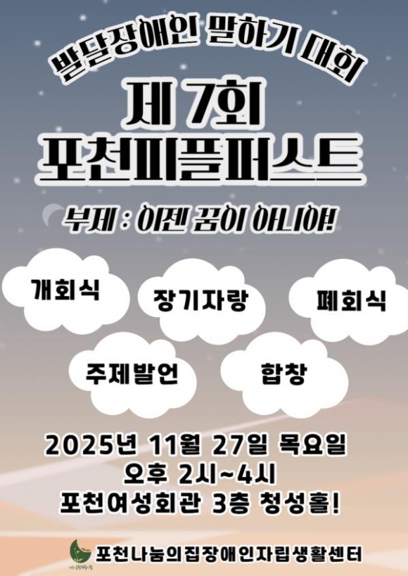 Á¦ 7ȸ Æ÷õÇÇÇÃÆÛ½ºÆ®´ëȸ ¡°ÀÌÁ¨ ²ÞÀÌ ¾Æ´Ï¾ß¡±´Â Æ÷õ½Ã ¹ß´ÞÀå¾ÖÀεéÀÇ ±Ç¸®ÁõÁø¿¡ Áß¿äÇÑ °è±â°¡ µÇ¸ç, Áö¿ª¿¡ »ì°í ÀÖ´Â ¸ðµç ¹ß´ÞÀå¾ÖÀεéÀÌ ¼Ò¿ÜµÇÁö ¾Ê°í ÀÚ½ÅÀÇ ¸ñ¼Ò¸®¸¦ ³¾ ¼ö ÀÖµµ·Ï Áö¼ÓÀûÀ¸·Î °è¼Ó À̾°¥ °ÍÀÌ´Ù. ÀÌ¿¡ Æ÷õ³ª´®ÀÇÁýÀå¾ÖÀÎÀÚ¸³»ýȰ¼¾ÅÍ´Â ¹ß´ÞÀå¾ÖÀεéÀÇ Àαǰú »çȸÂü¿© È®´ë¸¦ À§ÇØ °è¼Ó ¾ÕÀå¼³ °ÍÀÌ´Ù.