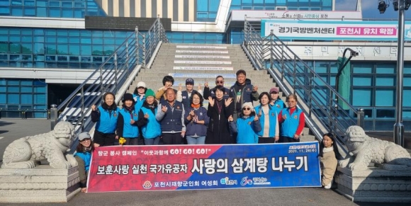 Æ÷õ½ÃÀçÇⱺÀÎȸ ¿©¼ºÈ¸(ȸÀå ±è¼ÒÁ¤)´Â Áö³ 11¿ù 26ÀÏ(¼ö), ¿©¼ºÈ¸¿ø Àü¿øÀÌ Âü¿©ÇÑ °¡¿îµ¥ °¡»ê¸é¿¡¼ ±¹°¡À¯°øÀÚ ¾î¸£½ÅµéÀ» À§ÇÑ ¡®ÀÌ¿ô°ú ÇÔ²² GO! GO! GO!¡¯ »ï°èÅÁ ³ª´©±â ºÀ»çȰµ¿À» ÁøÇàÇß´Ù.