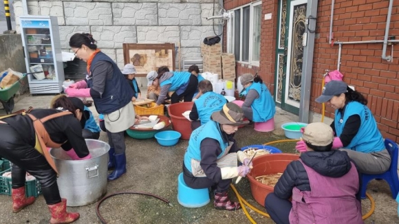 À̹ø »ï°èÅÁ ³ª´©±â ºÀ»ç¿¡¼ ¿©¼ºÈ¸¿øµéÀº 3ÀÏ µ¿¾È Á¤¼º²¯ Àç·á¸¦ ¼ÕÁúÇÏ°í ±èÄ¡ ´ã±×±â¿Í »ï°èÅÁ Á¶¸®¸¦ Á÷Á¢ ÁغñÇßÀ¸¸ç, ¿Ï¼ºµÈ »ï°èÅÁÀ» ±¹°¡À¯°øÀÚ °¡Á¤¿¡ Á÷Á¢ ¹æ¹® Àü´ÞÇÏ¿© µû¶æÇÑ º¸ÈÆÀÇ ¸¶À½°ú °¨»ç Àλ縦 ÀüÇß´Ù.