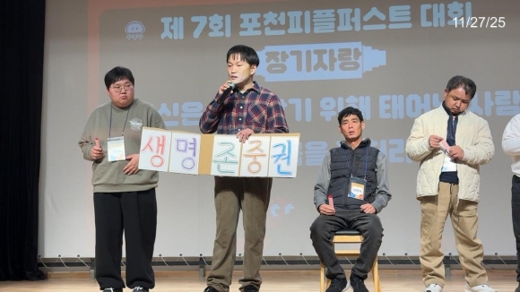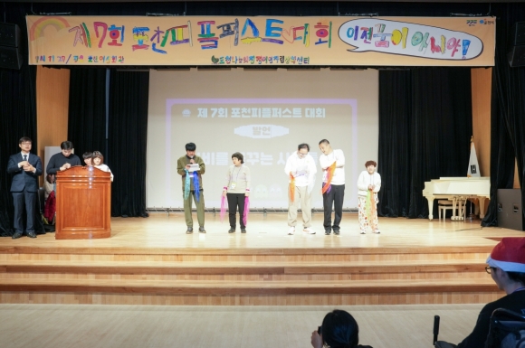 | Æ÷õ³ª´®ÀÇÁý Àå¾ÖÀÎÀÚ¸³»ýȰ¼¾ÅÍ´Â Áö³ 11¿ù 27ÀÏ(¸ñ) ¿ÀÈÄ 2½ÃºÎÅÍ 4½Ã±îÁö Æ÷õ¿©¼ºÈ¸°ü¿¡¼ ¡®¹ß´ÞÀå¾ÖÀÎÀ̱â Àü¿¡ ÇÑ »ç¶÷À¸·Î Á¸Áß¹Þ°í ½Í´Ù¡¯´Â Àǹ̸¦ ´ãÀº Á¦7ȸ Æ÷õÇÇÇÃÆÛ½ºÆ®´ëȸ ¡°ÀÌÁ¨ ²ÞÀÌ ¾Æ´Ï¾ß¡±¸¦ °³ÃÖÇÏ¿´´Ù.