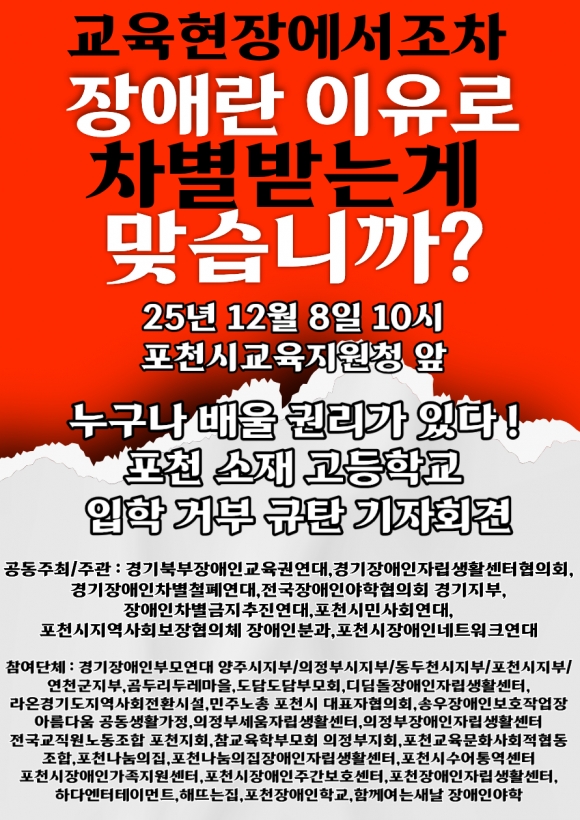 °ø±³À°Àº °¡´ÉÇÑ »ç¶÷¸¸ ¹Þ´Â Á¦µµ°¡ ¾Æ´Ï´Ù. Àå¾Ö¸¦ ÀÌÀ¯·Î Çаú ¼±ÅñÇÀÌ »ç¶óÁö°í, Áø·Î°¡ Â÷´ÜµÈ´Ù¸é ±³À°ÀÌ ¾Æ´Ñ ¸í¹éÇÑ Â÷º°ÀÌ´Ù. Àå¾ÖÇлýÀº ´©±¸³ª ¿øÇÏ´Â Çаú¸¦ ¼±ÅÃÇÒ ±Ç¸®°¡ ÀÖÀ¸¸ç, ±Ç¸®º¸ÀåÀ» À§ÇØ ÇÊ¿äÇÑ Áö¿øÀº Çб³¿Í ±³À°Á¦µµ°¡ ÇÔ²² Ã¥ÀÓÁ®¾ß ÇÑ´Ù. ±×·¯³ª Çб³´Â À§ÇèÀ» ÀÌÀ¯·Î ±× Ã¥ÀÓÀ» ȸÇÇÇϸç, Àå¾ÖÇлýÀ» Á¦µµ ¹ÛÀ¸·Î ¹Ð¾î³»°í ÀÖ´Ù. ÀÌ´Â ±³À°ÀÇ º»ÁúÀ» ÈѼÕÇÏ´Â ±¸Á¶Àû Â÷º°À̸ç, ¡¸Àå¾ÖÀÎÂ÷º°±ÝÁö ¹× ±Ç¸®±¸Á¦ µî¿¡ °üÇÑ ¹ý·ü¡¹ Á¦13Á¶ Á¦1Ç×ÀÌ ¸í½ÃÇÑ ¡®±³À°Ã¥ÀÓÀÚ´Â Àå¾ÖÀÎÀÇ ÀÔÇÐÀ» °ÅºÎÇϰųª, ÀüÇÐÀ» °¿äÇØ¼´Â ¾È µÈ´Ù¡¯´Â ±ÔÁ¤À» Á¤¸éÀ¸·Î À§¹ÝÇÑ ÇàÀ§´Ù.
