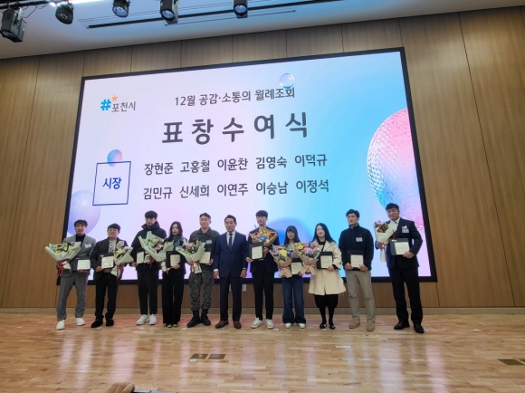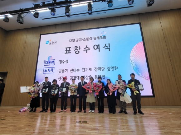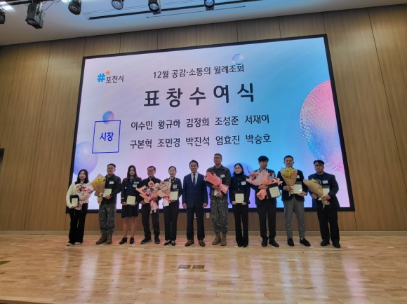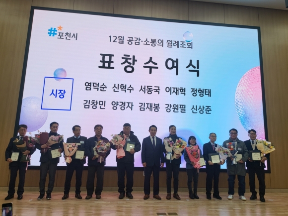 Æ÷õ½Ã´Â Áö³­ 12¿ù 1ÀÏ(¿ù) ¿ÀÀü 8½Ã 20ºÐ, Æ÷õ½Ãû ´ëȸÀǽǿ¡¼­ ¿­¸° ¡®12¿ù °ø°¨¡¤¼ÒÅëÀÇ ¿ù·ÊÁ¶È¸¡¯¿¡¼­ ´ëÅë·É ǥâ, µµÁö»ç ǥâ, Æ÷õ½ÃÀå ǥâ µî ´Ù¾çÇÑ ºÐ¾ßÀÇ À¯°øÀÚ¿¡ ´ëÇÑ ½Ã»ó½ÄÀ» ÁøÇàÇÏ¸ç ¿Ã ÇÑ ÇØÀÇ ³ë°í¸¦ °Ý·ÁÇß´Ù.