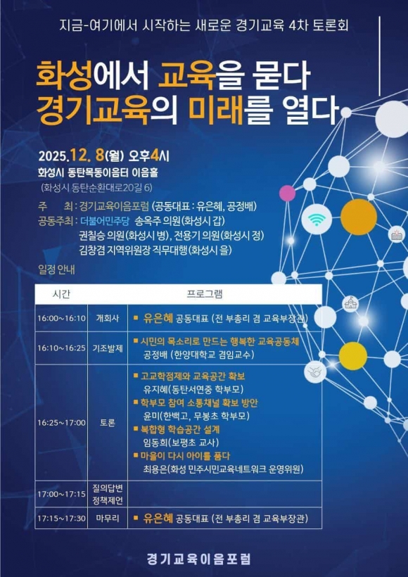 È­¼º Áö¿ª¿¡¼­ ¿­¸®´Â À̹ø Æ÷·³Àº Çб³ ÇöÀå, Çкθð, ½Ã¹Î»çȸ°¡ ÇÔ²² ¸ð¿© °ø±³À°ÀÇ ¹Ì·¡¸¦ ¸ð»öÇÏ´Â ÀÚ¸®·Î, Áö¿ª°ú Çб³°¡ Çù·ÂÇØ ±³À°ÀÇ »õ·Î¿î ±æÀ» ¸¸µé¾î°¡ÀÚ´Â ÃëÁö¸¦ ´ã°í ÀÖ´Ù.