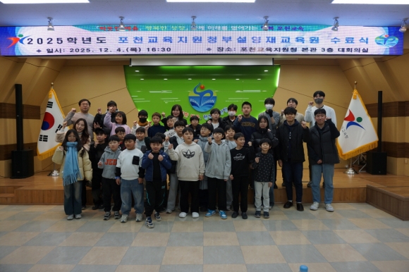 | °æ±âµµÆ÷õ±³À°Áö¿øÃ»ºÎ¼³¿µÀç±³À°¿øÀº Áö³ 2025³â 12¿ù 4ÀÏ Æ÷õ±³À°Áö¿øÃ»¿¡¼ ¼ö·á½ÄÀ» °³ÃÖÇß´Ù. Æ÷õ±³À°Áö¿øÃ» ´ëȸÀǽǿ¡¼ ¿¸° ¼ö·á½Ä¿¡´Â 2025Çг⵵ ¿µÀç±³À°¿ø ±³À°°úÁ¤À» ¼ö·áÇÑ ¿µÀç Çлý 42¸í°ú Çкθð, Áöµµ±³»ç µî 100¿© ¸íÀÌ Âü¼®ÇÏ¿© ÇлýµéÀÇ ¼ö·á½ÄÀ» ÃàÇÏÇÏ¿´´Ù.