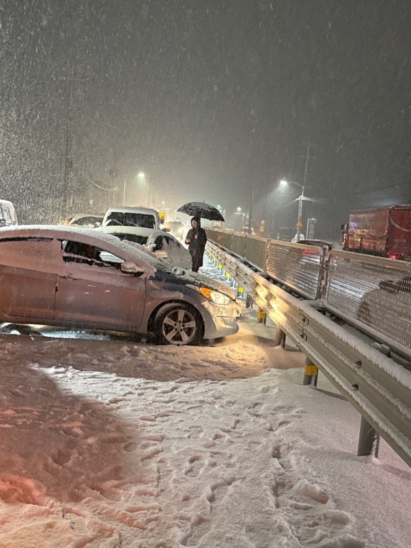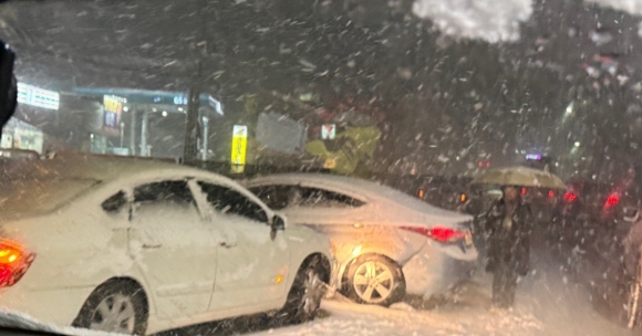 | Áö³ 4ÀÏ, Æ÷õ½Ã ½ÅºÏ¸é ±ÝºûÇÏ¿ì¡ ¾Õ µµ·Î¿¡¼ °©ÀÛ½º·¯¿î Æø¼³·Î ÀÎÇØ 3Áß Ãßµ¹»ç°í°¡ ¹ß»ýÇß´Ù. À̳¯ Æ÷õ Áö¿ª¿¡´Â ¸¹Àº ´«ÀÌ ³»·Á µµ·Î°¡ ±Þ°ÝÈ÷ ¹Ì²ô·¯¿öÁö¸é¼ Â÷·® ¿îÀüÀÚµéÀÌ Á¦µ¿¿¡ ¾î·Á¿òÀ» °Þ¾ú´Ù.