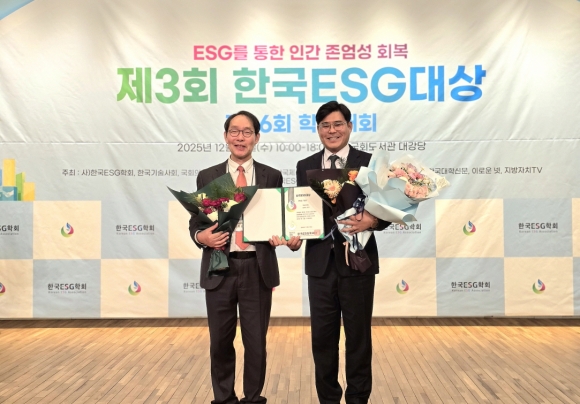 < ¡°Á¦3ȸ Çѱ¹ESG´ë»ó¡±¿¡¼ ÇàÁ¤ºÎ ´ë»ó ¼ö»ó(ÁÂ: °í¹®Çö ÇÐȸÀå, ¿ì: ÀÓ¿µ¼® ¿øÀå) >