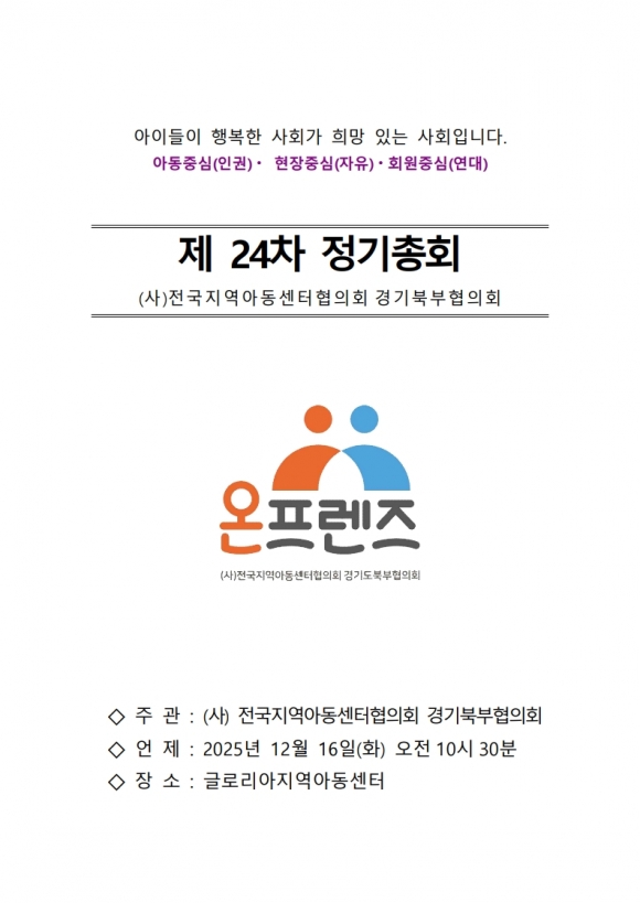 (»ç)Àü±¹Áö¿ª¾Æµ¿¼¾ÅÍÇùÀÇȸ °æ±âºÏºÎÇùÀÇȸ, Á¦24Â÷ Á¤±âÃÑȸ °³ÃÖ