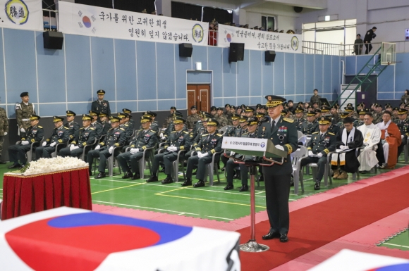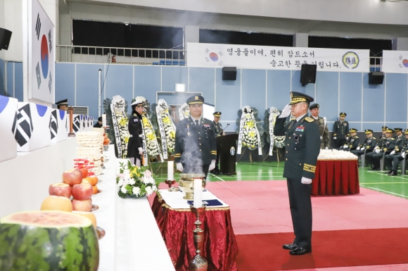 ÀÌÀÏ¿ë ±º´ÜÀåÀº Ã߸ð»ç¿¡¼­ "Áö±Ý ¿ì¸®°¡ ´©¸®°í ÀÖ´Â ÆòÈ­¿Í ¹ø¿µÀº ¼±¹è Àü¿ì´ÔµéÀÇ °í±ÍÇÑ Èñ»ýÀÌ ÀÖ¾ú±â¿¡ °¡´ÉÇß´Ù"¸ç, "Á¶±¹ÀÇ ¼Õ±æÀ» °£ÀýÈ÷ ±â´Ù¸®½Ç ¼±¹è Àü¿ì´ÔµéÀÇ À¯Çظ¦ ¸ðµÎ ã¾Æ³»¾î ±×¸®¿î °¡Á·°ú Á¶±¹ÀÇ Ç°À¸·Î ¸ð½Ãµµ·Ï ³¡±îÁö ÃÖ¼±À» ´ÙÇϰڽÀ´Ï´Ù"°í °­Á¶Çß´Ù.