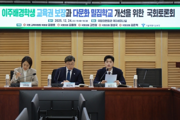 Áö³ 24ÀÏ, ¼¿ï½Ã±³À°Ã» µî°ú ÇÔ²² ÁÖÃÖÇÑ ¡®ÀÌÁÖ¹è°æÇлý ±³À°±Ç º¸Àå°ú ´Ù¹®È ¹ÐÁýÇб³ °³¼±À» À§ÇÑ ±¹È¸ Åä·Ðȸ¡¯¿¡¼ ±è¿ëÅ ÀÇ¿øÀº ±×°£ ÃßÁøÇؿԴø ÁÖ¿ä ´Ù¹®È±³À° Á¤Ã¥°ú ¼º°ú¸¦ ¼Ò°³Çϰí, ÇâÈÄ ÀÔ¹ý°úÁ¦ µîÀÇ ¹æÇ⼺À» Á¦½ÃÇß´Ù.