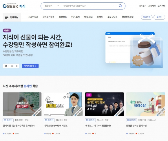 ÁöÀÚü À¯ÀÏ ÃÖ¿ì¼ö °ø°ø¾Û¿¡ ¼±Á¤µÈ °æ±âµµ Áö½Ä(GSEEK)Àº 475¸¸¿© ¸íÀÌ ÀÌ¿ëÇÏ´Â °æ±âµµ ´ëÇ¥ Æò»ýÇнÀ Ç÷§ÆûÀ¸·Î, ¸ð¹ÙÀÏ ¾Û°ú ´©¸®ÁýÀ» ÅëÇØ ´Ù¾çÇÑ ±³À° ÄÜÅÙÃ÷¸¦ Á¦°øÇÑ´Ù. Ã롤â¾÷, ÀÚ°ÝÁõ, ¿Ü±¹¾î µî 13°³ ºÐ¾ß 1,900¿© °³ÀÇ ´Ù¾çÇÑ ¿Â¶óÀÎ °ÁÂ¿Í ½Ç½Ã°£ È»ó°Á¸¦ ¿î¿µÇϰí, Áö¿ª ÁÖ¹ÎÀ» À§ÇÑ ¿ÀÇÁ¶óÀÎ ÇнÀ Á¤º¸µµ Á¦°øÇϰí ÀÖ´Ù.