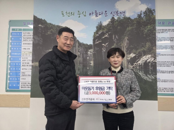 | Æ÷õ½Ã ½ÅºÏ¸é ÇàÁ¤º¹Áö¼¾ÅÍ´Â Áö³ 10ÀÏ ½ÅºÏ¸é ¼ÒÀç ±â¾÷ ½ÅÈ£Àü±â°ø»ç(´ëÇ¥ À̼±ÁÖ)°¡ Ãë¾à°èÃþ Áö¿øÀ» À§ÇÑ ÀÌ¿ôµ½±â ¼º±Ý 300¸¸ ¿øÀ» ±âŹÇß´Ù°í ¹àÇû´Ù.