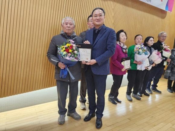 Æ÷õ½Ã¿Í ³ëÀÎȸ¸¦ À§ÇØ Çå½ÅÇØ ¿Â °ø·ÎÀÚµéÀ» ´ë»óÀ¸·Î °¨»çÆÐ 3¸í, Æ÷õ½ÃÀå ǥâ 11¸í, Æ÷õ½ÃÀÇȸ ÀÇÀå ǥâ 11¸í, ±¹È¸ÀÇ¿ø ǥâ 13¸í, °æ±âµµÀÇȸ ÀÇÀå ǥâ 6¸í µî ¸ðµÎ 40¿© ¸í¿¡ À̸£´Â ¾î¸£½Å°ú ºÀ»çÀÚµéÀÌ ¹«´ë¿¡ ¿Ã¶ú´Ù. ¹Ú¼ö´Â Çü½ÄÀÌ ¾Æ´Ï¶ó Á¸°æÀ̾ú°í, ±× ¹Ú¼ö ¼Ó¿¡´Â ¡°¼ö°íÇϼ̽À´Ï´Ù¡±¶ó´Â ¸»º¸´Ù ±íÀº ¸¶À½ÀÌ ´ã°Ü ÀÖ¾ú´Ù.