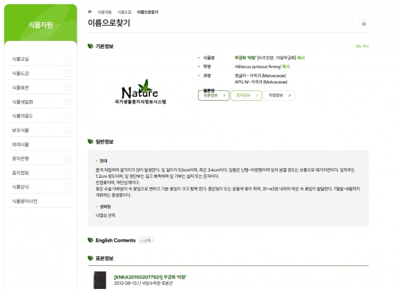±¹¸³¼ö¸ñ¿øÀº 1998³âºÎÅÍ ±¹°¡»ý¹°ÀÚ¿øÀÇ ¾ÈÁ¤ÀûÀÎ º¸Á¸°ú °ü¸®¸¦ À§ÇØ ±¹°¡»ý¹°Á¾Áö½ÄÁ¤º¸½Ã½ºÅÛ(Nature, www.nature.go.kr)À» ¿î¿µÇØ ¿Ô´Ù. 2026³âºÎÅÍ´Â ¿ì¸®³ª¶ó¸¦ ´ëÇ¥ÇÏ´Â ¹«±ÃÈ­ ǰÁ¾ 125Á¾À» Æ÷ÇÔ, ÃÑ 2,390Á¾ÀÇ Àç¹è½Ä¹°¿¡ ´ëÇØ »çÁø°ú Ç¥º»ÀڷḦ Æ÷ÇÔÇÑ µµ°¨Á¤º¸¸¦ ¼øÂ÷ÀûÀ¸·Î Á¦°øÇÒ °èȹÀÌ´Ù.