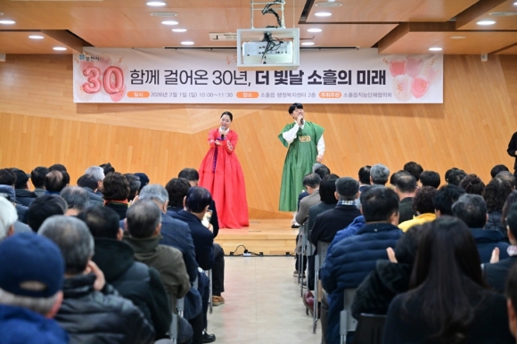 Çà»ç´Â Æ÷õ¹®È°ü±¤Àç´Ü ¹Î¼Ó¿¹¼ú´Ü°ú ÁÖ¹ÎÀÚġȸ µð½ºÄÚÀ屸ÆÀÀÇ ½ÄÀü °ø¿¬À¸·Î ½ÃÀÛµÆÀ¸¸ç, ÀÌ¾î ¼ÒÈêÀ¾ ¹ßÀü¿¡ ±â¿©ÇÑ Àλçµé¿¡°Ô ¡®ÀÚ¶û½º·¯¿î ¼ÒÈêÀλó¡¯À» ¼ö¿©Çϰí 2026³â ù ¼ÒÈêÀ¾ Ãâ»ý½Å°í °¡Á·¿¡°Ô ±â³äÆÐ¸¦ Àü´ÞÇÏ´Â ¼øÀ¸·Î ÁøÇàµÆ´Ù. ÀÌÈÄ ÁֹΠ¼³¹®Á¶»ç¸¦ ¹ÙÅÁÀ¸·Î ¼±Á¤µÈ Áö³ 30³â°£ÀÇ ÁÖ¿ä ¼º°ú¸¦ ´ãÀº ¿µ»óÀÌ »ó¿µµÅ À¾ ½Â°Ý°ú ÅÃÁöÁö±¸ °³¹ß, °í¼Óµµ·Î °³Åë, ÁöÇÏö °³Åë È®Á¤ µî ¼ÒÈêÀ¾ÀÇ ¼ºÀå °úÁ¤À» µÇ¤´Â ½Ã°£ÀÌ À̾îÁ³´Ù.