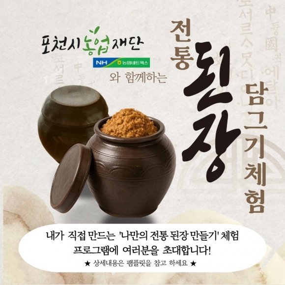À̹ø üÇèÀº ¿£¿¡ÀÌÄ¡(NH)³óÇù¿©Çà°ú ¿¬°èÇØ ¿ì¸®³ª¶ó ÀüÅë ½Ä¹®ÈÀÇ °¡Ä¡¿Í Àǹ̸¦ ¾Ë¸®°í °è½ÂÇϱâ À§ÇØ ±âȹµÈ ³óÃÌÀ¶º¹ÇÕ Ã¼Çè ÇÁ·Î±×·¥ÀÌ´Ù. ÀüÅë ¹æ½ÄÀ¸·Î µÈÀåÀ» ´ã±×´Â °ü³» üÇè ³ó°¡ÀΠû»ê¼ÖµÕ¿ì¸®, ±³µ¿Àåµ¶´ë¸¶À», ¿ï¹Ì¿¬²É¸¶À»¿¡¼ ¿î¿µµÈ´Ù.
