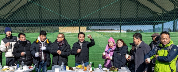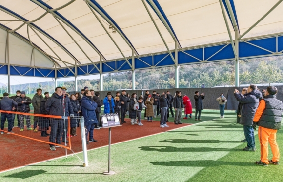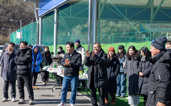 Âü¼®ÀÚµéÀº Ãß¿î ³¯¾¾ ¼Ó¿¡¼µµ Á·±¸ Ä£¼±°æ±â¿¡ Àû±Ø Âü¿©Çϸç Çùȸ °£ º®À» Çã¹°°í ±³·ù¿Í ÈÇÕÀ» ´ÙÁö´Â ¶æ±íÀº ½Ã°£À» º¸³Â´Ù. °æ±â °á°ú¸¦ ¶°³ª ¼·Î¸¦ ÀÀ¿øÇÏ°í ¿ôÀ½À» ³ª´©´Â ¸ð½À ¼Ó¿¡¼ ¿¹¼úÀÎ °øµ¿Ã¼ÀÇ ²ö²öÇÑ ¿¬´ë°¨ÀÌ ÀÚ¿¬½º·´°Ô µå·¯³µ´Ù.