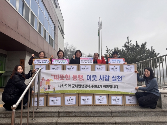 ¸ÕÀú ³ª»ç¸ð´Â ¸íÀý ²Ù·¯¹Ì 30°³¸¦ ±º³»¸é¿¡ Àü´ÞÇß´Ù. ²Ù·¯¹Ì´Â ȸ¿øµéÀÌ Á÷Á¢ ÁغñÇÑ ¹°±èÄ¡¿Í ¶±±¹¶±, °è¶õ µî ¸íÀý ½ÄǰÀ¸·Î ±¸¼ºµÆÀ¸¸ç, ±º³»¸é ³» µµ¿òÀÌ ÇÊ¿äÇÑ °¡±¸¿¡ Àü´ÞµÉ ¿¹Á¤ÀÌ´Ù. ³ª»ç¸ð´Â ¸Å³â ½Ò°ú ¸íÀý ²Ù·¯¹Ì µîÀ» ±âºÎÇϸç Áö¿ª»çȸ ³ª´® ¹®È¸¦ ²ÙÁØÈ÷ À̾î¿À°í ÀÖ´Ù.