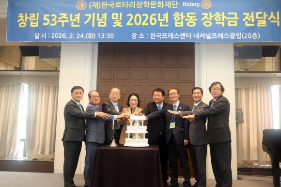 | (Àç)Çѱ¹·ÎŸ¸® ÀåÇй®ÈÀç´Ü(ÀÌ»çÀå ½ÅÇØÁø, ÀÌÇÏ Àç´Ü)Àº Áö³ 2¿ù 24ÀÏ Çѱ¹ÇÁ·¹½º¼¾ÅÍ¿¡¼ Çѱ¹·ÎŸ¸® ÁöµµÀÚ¿Í Áö±¸ Çö¡¤Â÷±â ÃÑÀç, °í¾×±âºÎÀÚ, °ü¸íÀåÇÐÀÇÀÎÀ» ºñ·ÔÇÑ Å¬·´È¸Àå ¹× Àç´Ü ÀÓ¿øÀÌ Âü¼®ÇÑ °¡¿îµ¥ ¡®Ã¢¸³ 53Áֳ⠱â³ä ¹× 2026³âµµ ÇÕµ¿ ÀåÇÐ±Ý Àü´Þ½Ä¡¯À» °³ÃÖÇÏ°í ±Ý³âµµ ÀåÇÐ±Ý ÃÑ 52¾ï3,000¸¸ ¿øÀ» ±¹Á¦·ÎŸ¸® 19°³ Áö±¸ ÃÑÀç¿¡°Ô Àü´ÞÇß´Ù.