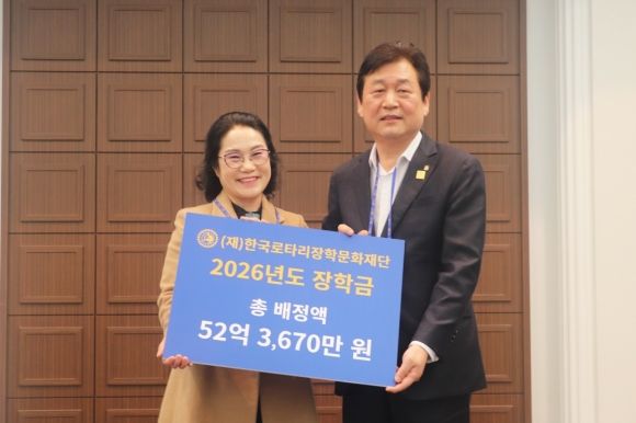 ½ÅÇØÁø Àç´Ü ÀÌ»çÀåÀº 2026³âµµ ÃÑ ÀåÇÐ±Ý 52¾ï3,000¸¸ ¿øÀ» 2025-26³âµµ ÃÑÀç´Ü ȸÀåÀÎ ±¹Á¦·ÎŸ¸® 3590Áö±¸ ¿À´öÀ¯ ÃÑÀç¿¡°Ô ´ëÇ¥·Î Àü´ÞÇß´Ù.